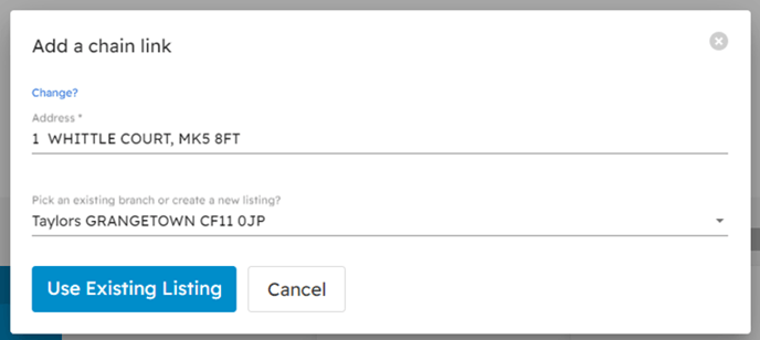 - Confirm the agent acting for the seller, then click ‘Use existing Listing’.