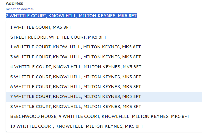 - Select the required address from the list.