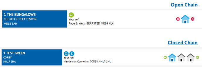 with red crosses either side of the house icons. Once the chain has been closed, the house icons change to a green tick.