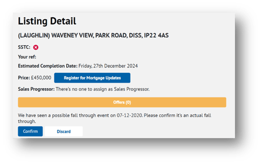 - A message is displayed within the property record for you either ‘confirm’ or ‘discard’ the fall-through.