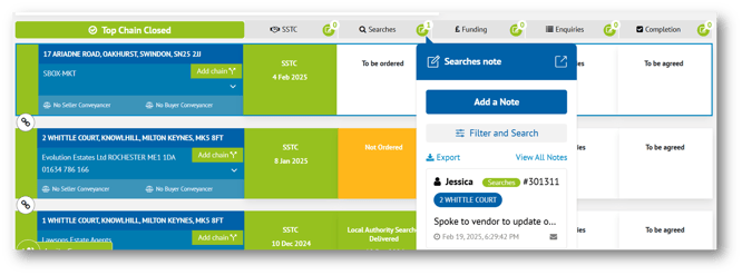 You can now make notes visible to other parties involved in the same transaction, such as the Conveyancer. Likewise, Conveyancers can create shareable notes that case handlers can see.