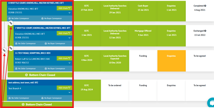 Previously, users had to click on each chain link to view the law firms involved in each transaction. With this update, conveyancers are displayed directly on each chain link, allowing users to see the information at a glance.